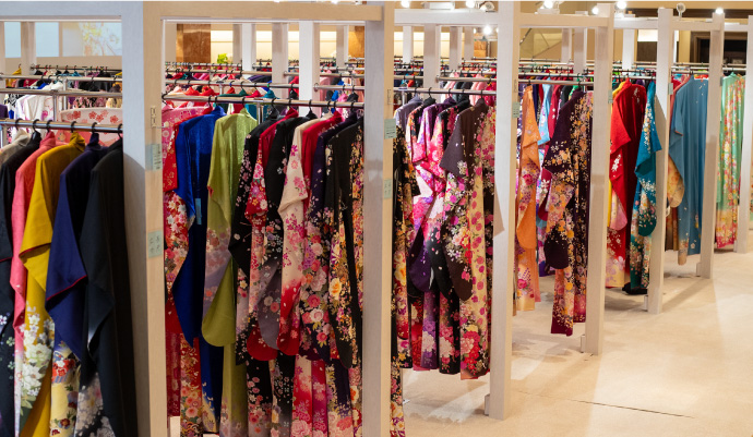 会場には驚きの衣裳点数が並び、きっと好みの振袖に出会えるはず。見学だけでもOK!ぜひご参加ください